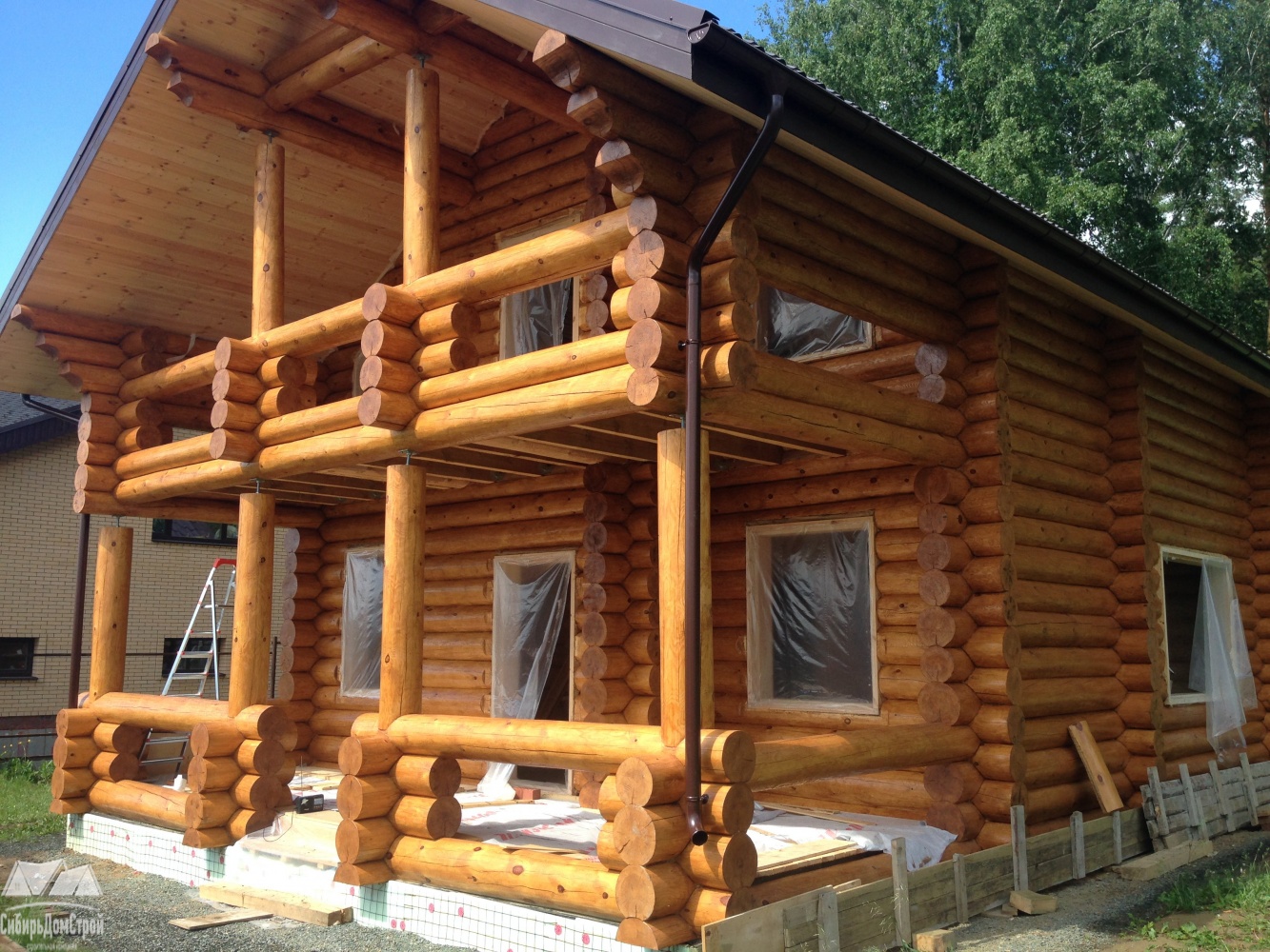 • фронтоны из оцилиндрованного бревна Ø 220